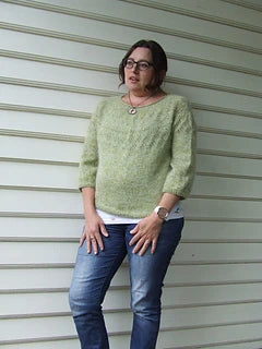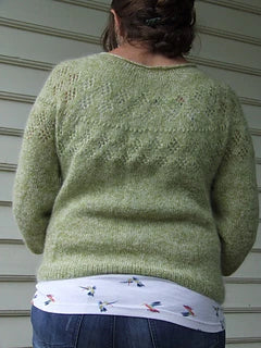 When the days are warming but you still need an extra layer, Kanapu is perfect. It is worked with a strand of alpaca / silk lace weight and a stand of silk / mohair lace weight yarn held together to create a cozy laying piece. The yoke is cast on and short rows are worked before increases and a simple but effective lace panel is worked reflecting the light dancing through those fresh spring leaves. The yoke is finished, and the sleeves are separated before the body is worked down straight with no shaping to a simple rib hem. The sleeves are put back on the needles and worked straight down to a ¾ length with no shaping before a decrease round is worked and finished with a simple rib cuff. There are two options for the neckline, either no neckband except for the cast on edge to create a soft, floaty look or a simple rib neckband if preferred and depending on how your yarn is sitting. The sample is knit to a waist / high hip length but being top down you can knit to the length you desire.