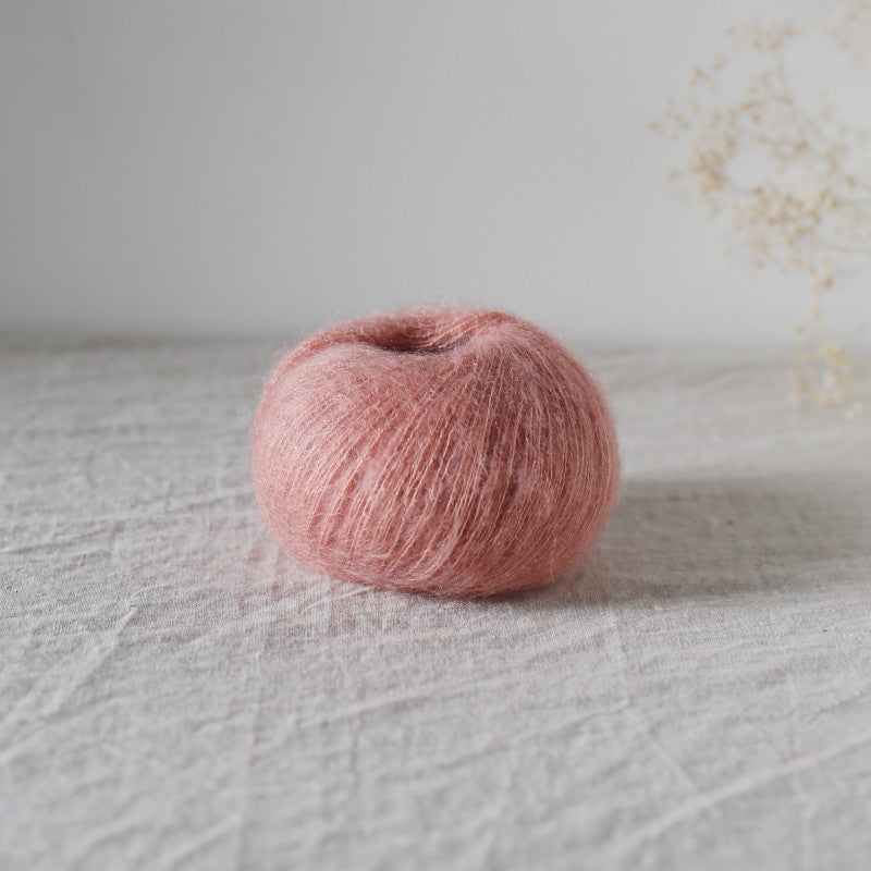 Bérénice is a unique blend of extra-fine Angora goat fibres from South African farms committed to animal welfare and the soft, plump wool of our organic Merinos d'Arles, spun into loops around a strong, shiny silk yarn, then combed to give the desired tousled, voluminous look.