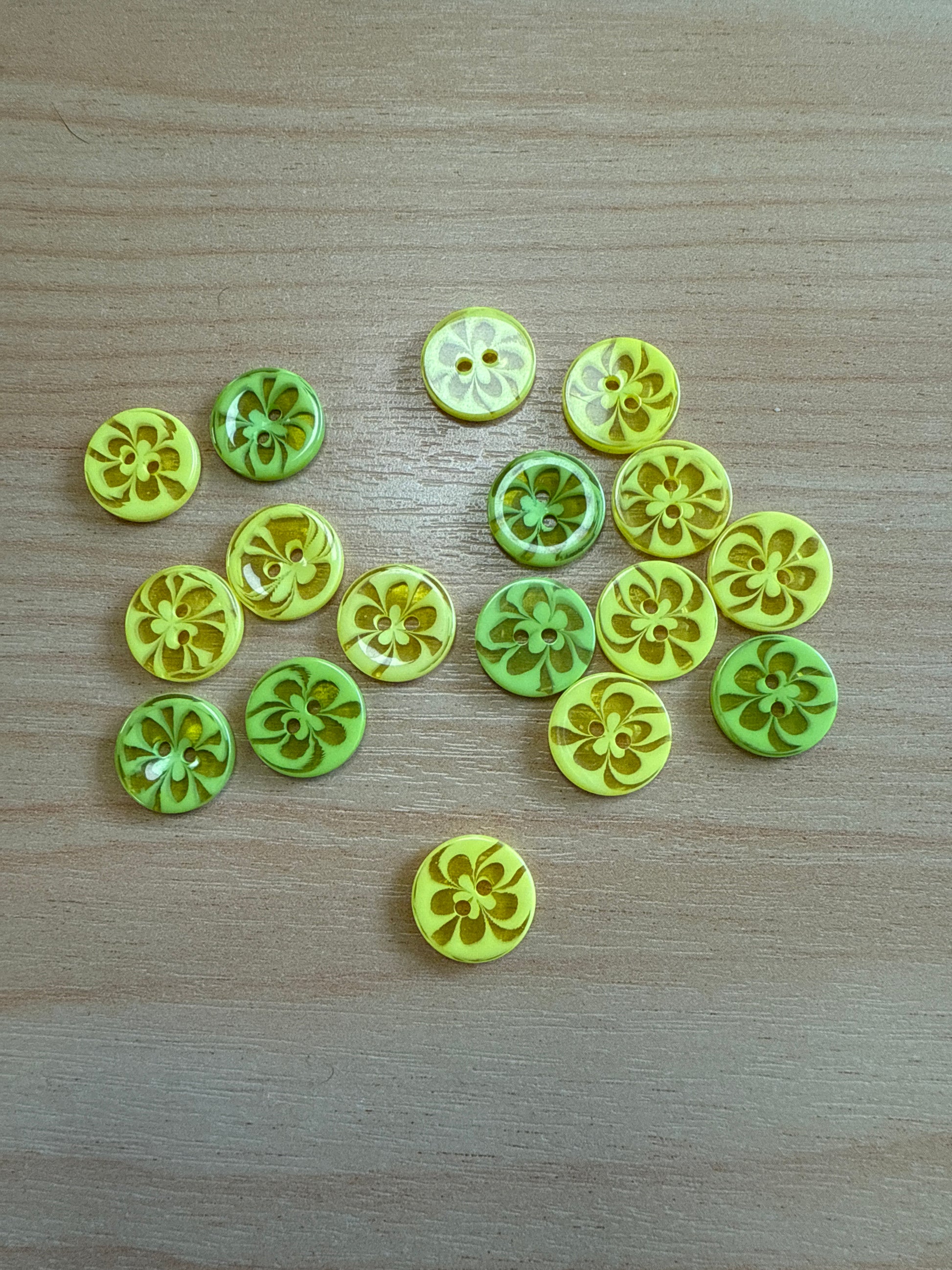 Cute resin buttons, perfect for kids knits. Pack of 12 x 13mm buttons.