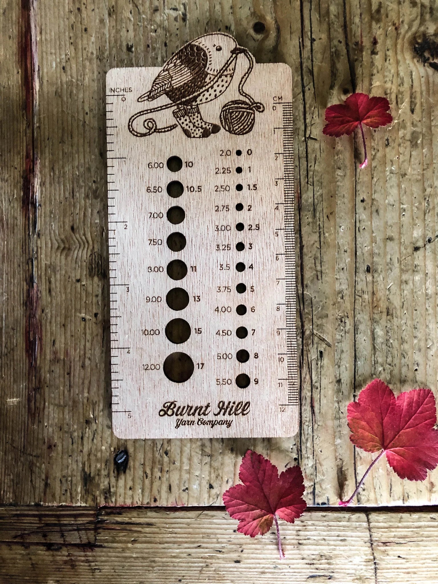 Burnt Hill Yarn Company - Kakaruwai South Island Robin Needle Gauge and Ruler - Wooden