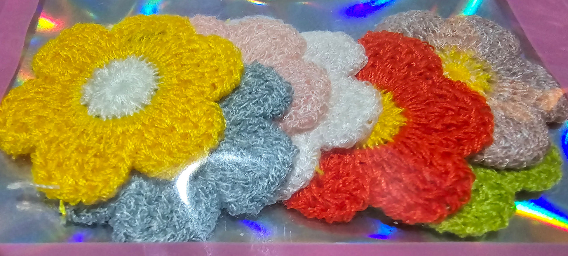 Grab some of these cute crochet flowers for embellishing your knitwear, adding flair to hide mended garments and anything else you might think of.