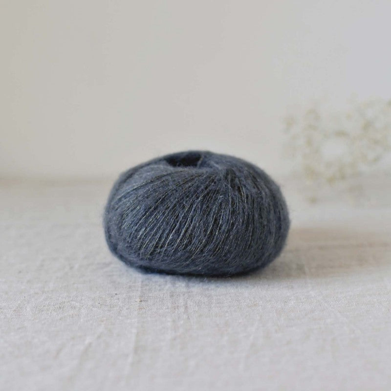 Bérénice is a unique blend of extra-fine Angora goat fibres from South African farms committed to animal welfare and the soft, plump wool of our organic Merinos d'Arles, spun into loops around a strong, shiny silk yarn, then combed to give the desired tousled, voluminous look.