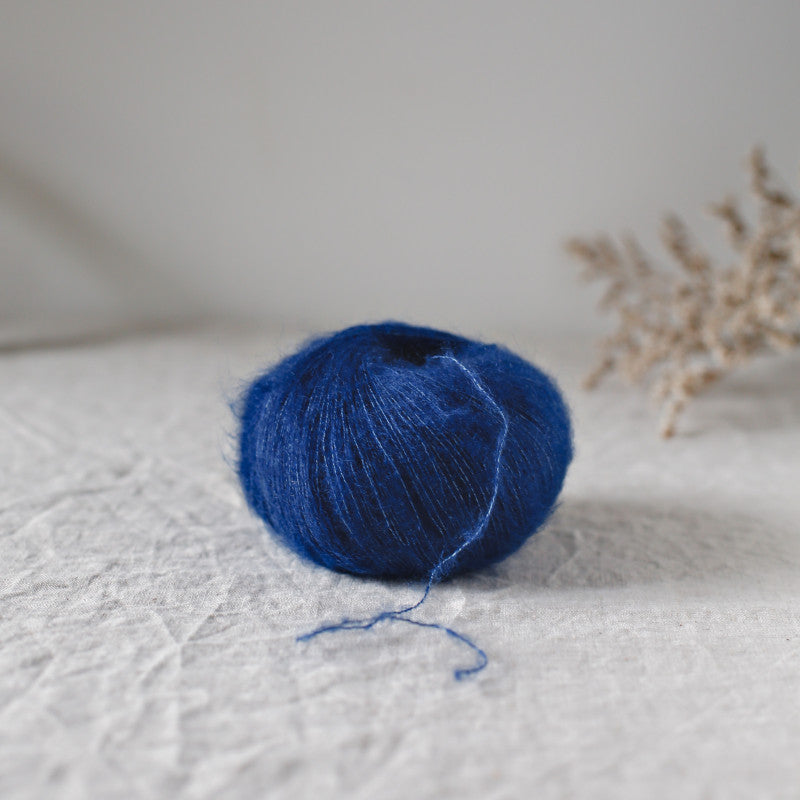 Bérénice is a unique blend of extra-fine Angora goat fibres from South African farms committed to animal welfare and the soft, plump wool of our organic Merinos d'Arles, spun into loops around a strong, shiny silk yarn, then combed to give the desired tousled, voluminous look.