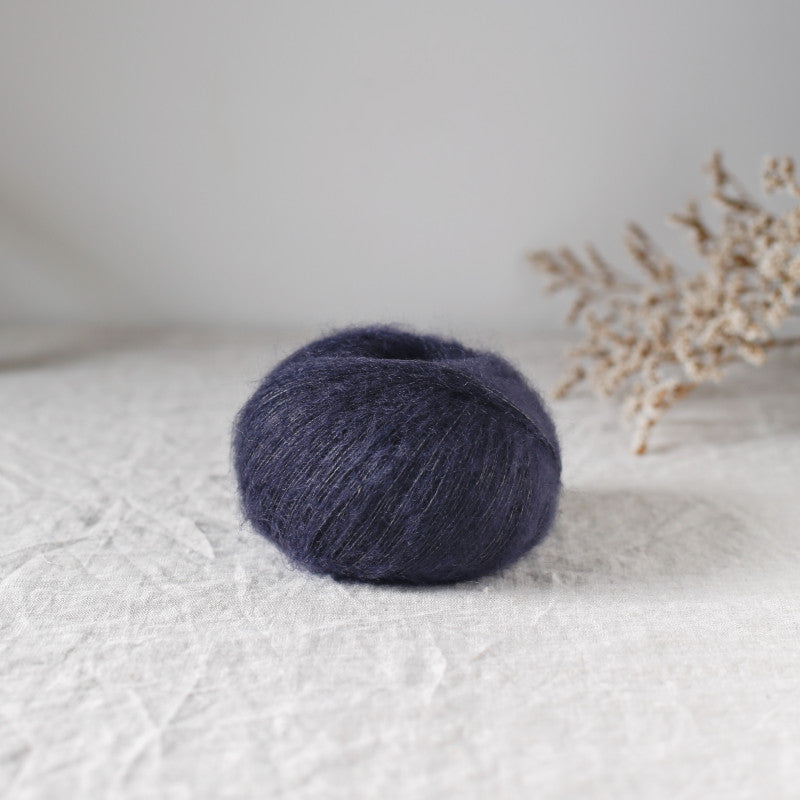 Bérénice is a unique blend of extra-fine Angora goat fibres from South African farms committed to animal welfare and the soft, plump wool of our organic Merinos d'Arles, spun into loops around a strong, shiny silk yarn, then combed to give the desired tousled, voluminous look.
