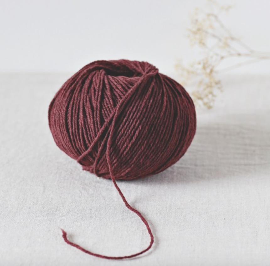 This is De Rerum Natura’s worsted weight French merino yarn. The yarn blends soft French merinos d'Arles and black Portuguese merino produced in France in an ecological way.