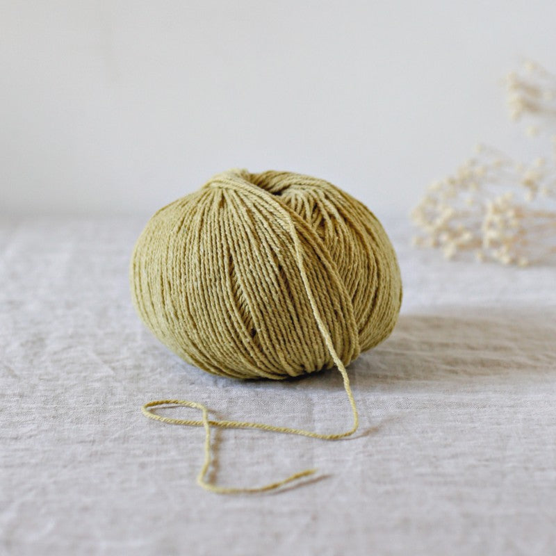 The presence of cotton in its composition gives it a little more softness, a fresher feel and more compactness than its pure wool brother. The small cotton flakes give it an original texture and create a mottled look, more or less pronounced depending on the colour. It is a rather dry yarn which, like many woolen spun yarns, gains in softness and fluffiness once washed.