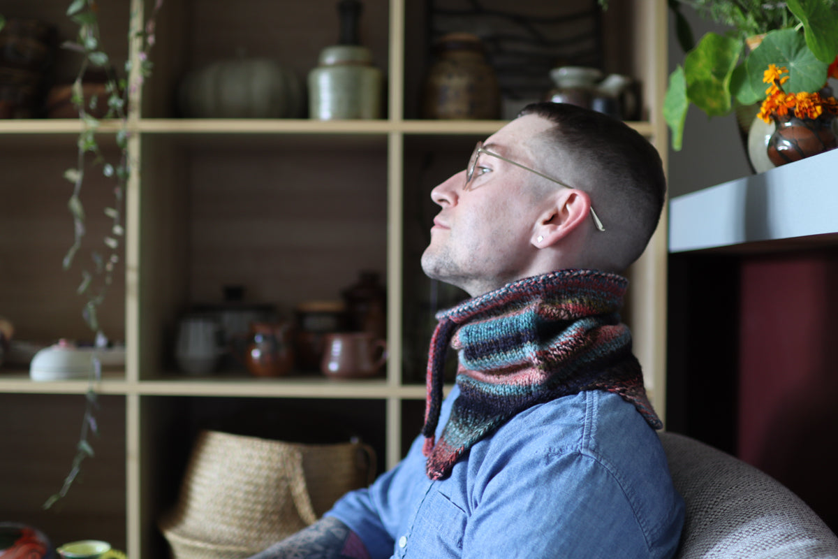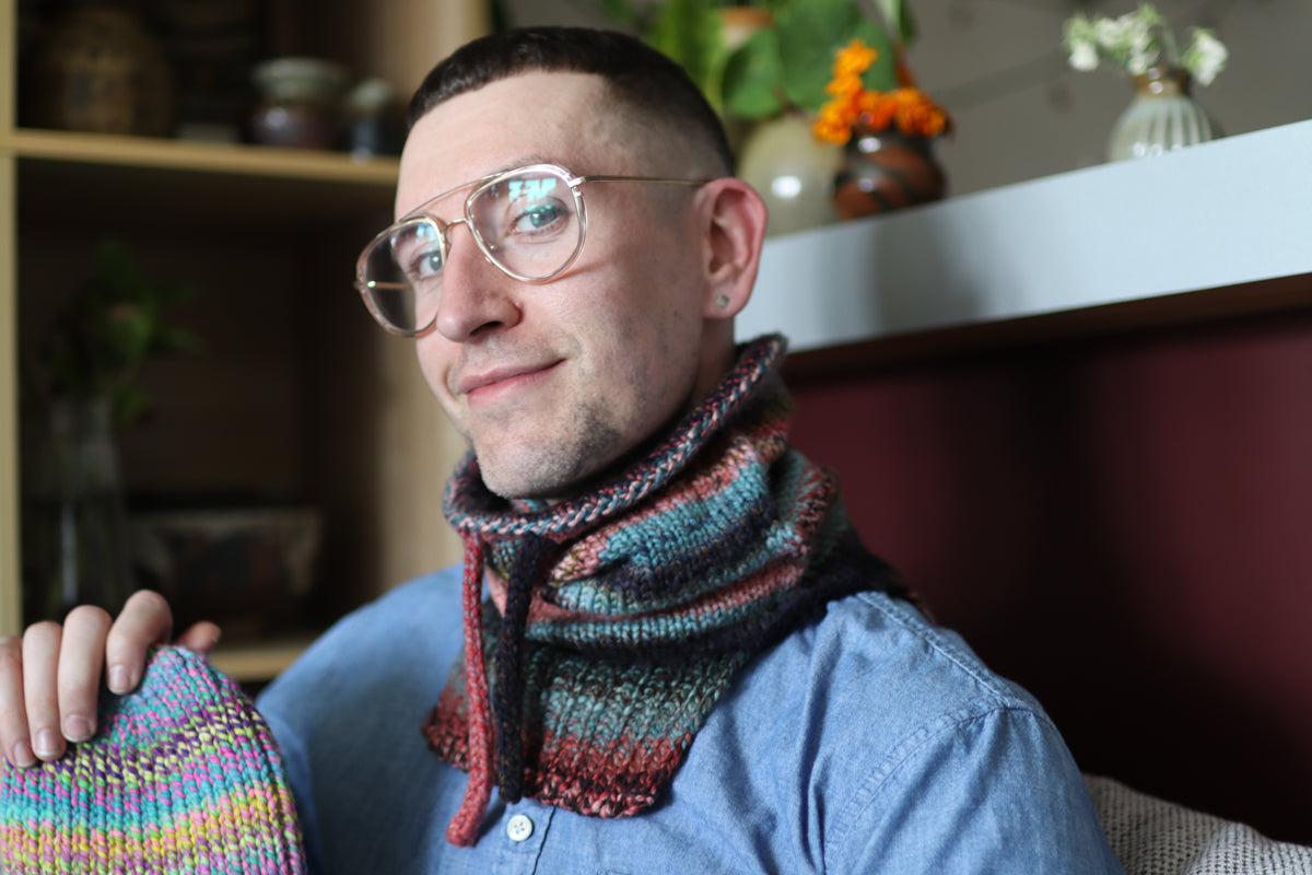 This is a simple cowl with a drawstring top. The purpose was to maximise the use of two skeins of Plump from Spincycle Yarns and also to create a satisfying final cowl that stands up.