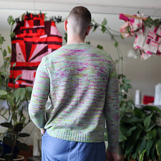 This pattern is a great foundation piece that you can really dig into the fit of, and make it work for your body. It is a knit flat, bottom up, crew neck pullover.