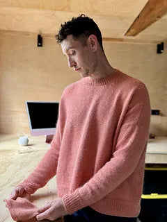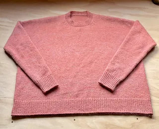 Design Notes: The pattern is worked flat from the bottom up and seamed. The sleeves are knit flat and seamed into place after finishing the back and front of the pieces. The neckline is picked up as either a v-neck or a round neck and finished in the round. Please note you may finish the collar however you prefer but the sample is shown with a 1x1 rib collar that is not doubled. All the meterage are estimates that assume a 40cm sleeve and a 56cm length from the back of neck. If you are going to make your garment longer assume an additional 100m per 10cm of length added in the body and roughly 40m per 10cm added in the sleeve. The pattern does not include set instructions for the sleeves, you will use the calculator included to make your sleeves.