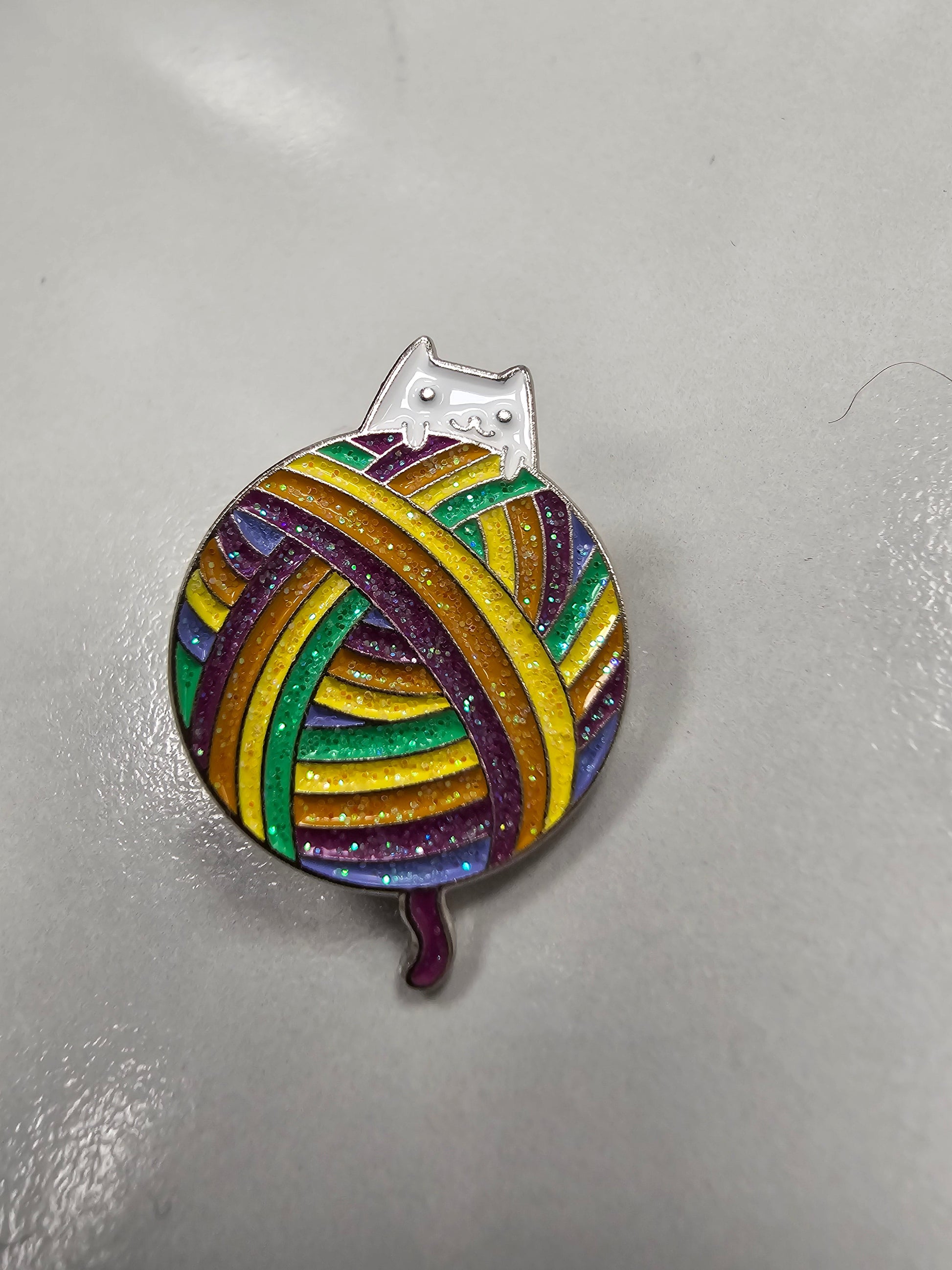 Enamel Pin - Cat with Rainbow Yarn Ball