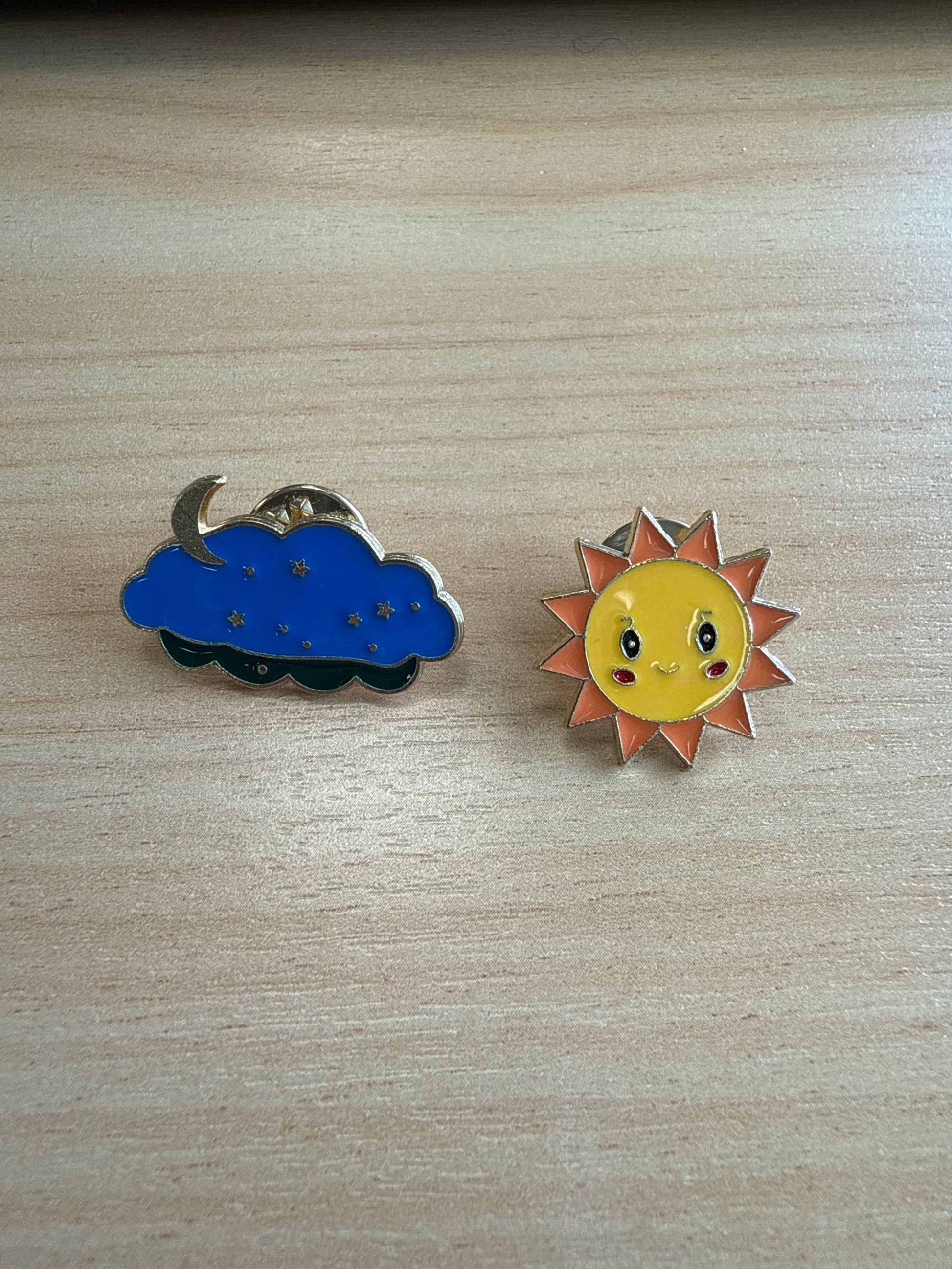 Assorted enamel lapel pins, for adorning your knitting bag or other decorations.