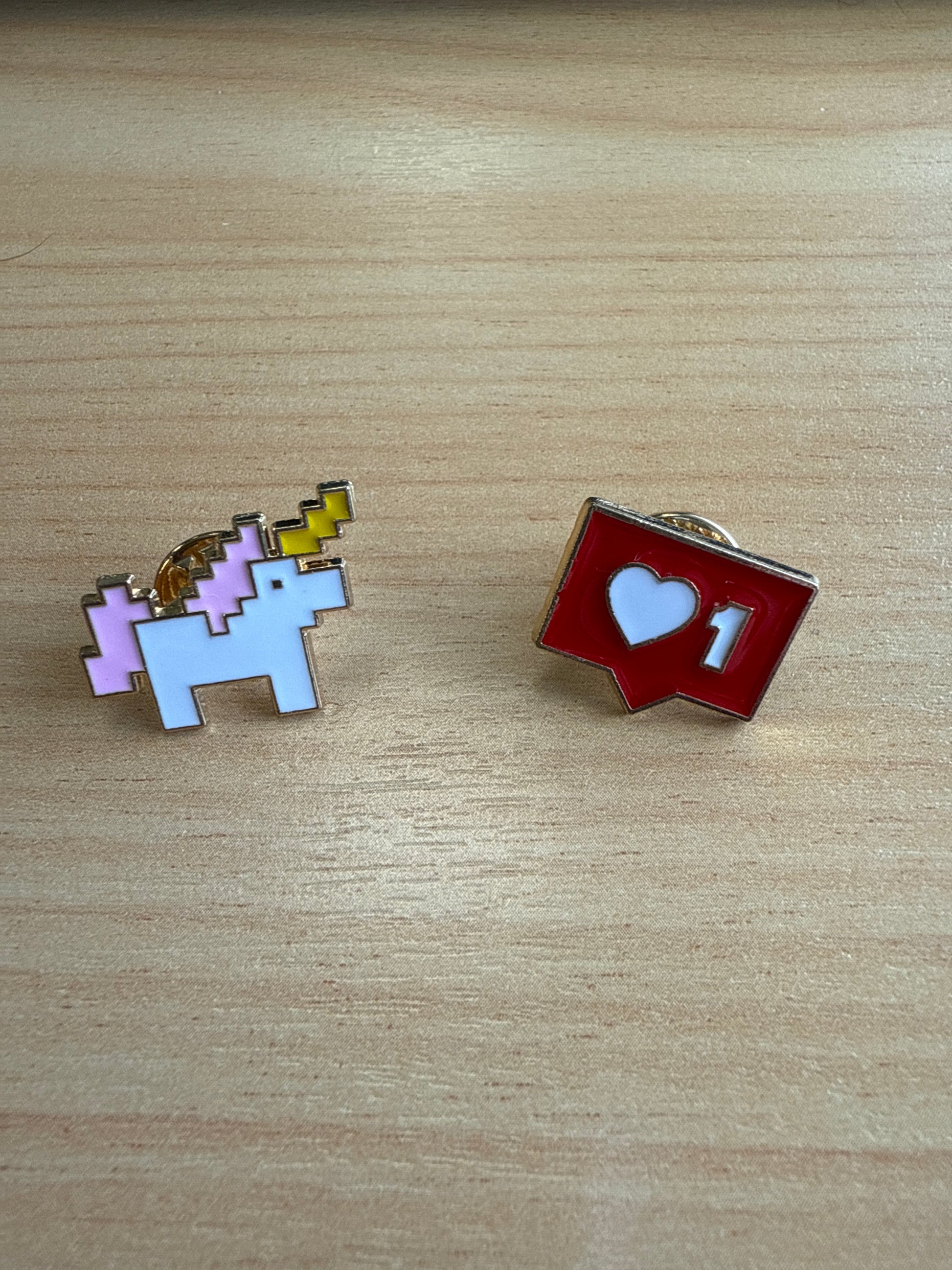 Assorted enamel lapel pins, for adorning your knitting bag or other decorations.