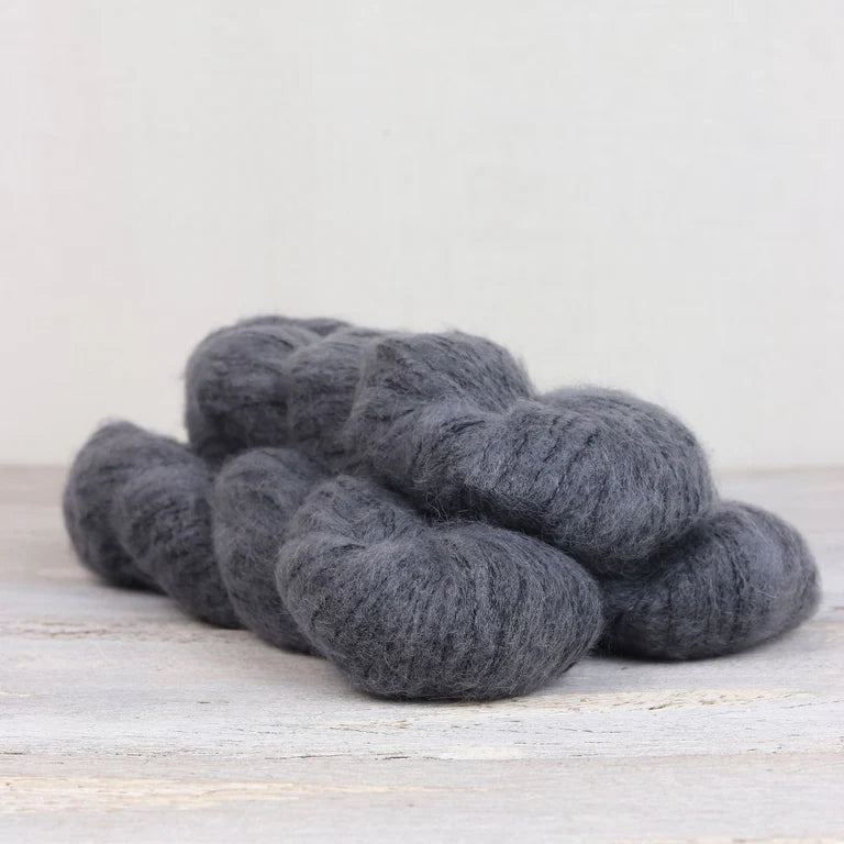 The Fibre Co.’s first brushed yarn is made in a mill in Southern Peru, home of the alpaca. Cirro is a sport weight yarn combining long, lustrous Suri alpaca with Merino wool, and then wrapping this fluffy fibre around an organic cotton thread to make a light and airy yarn perfectly balanced for body and drape. Cirro creates a delightfully soft haloed fabric that is light as a feather and easily worn next to the skin.