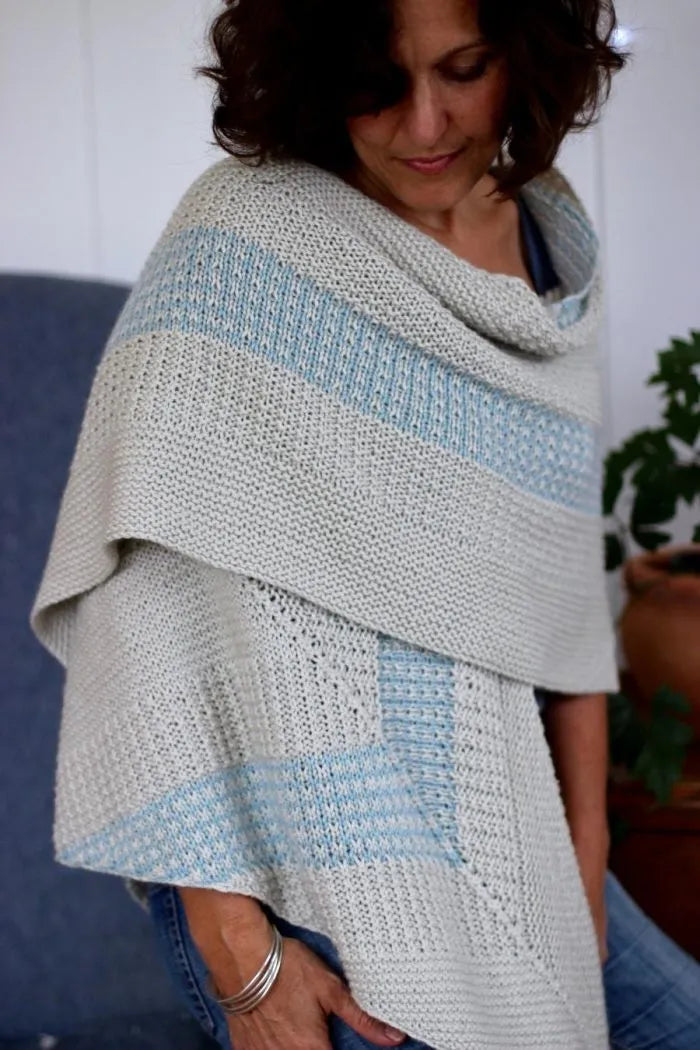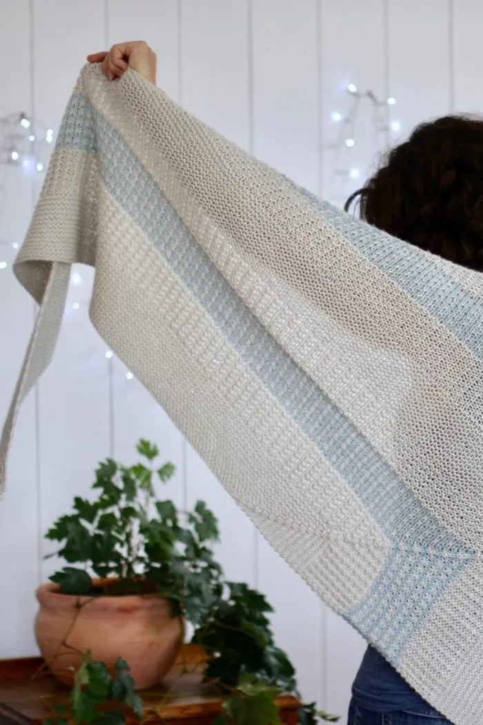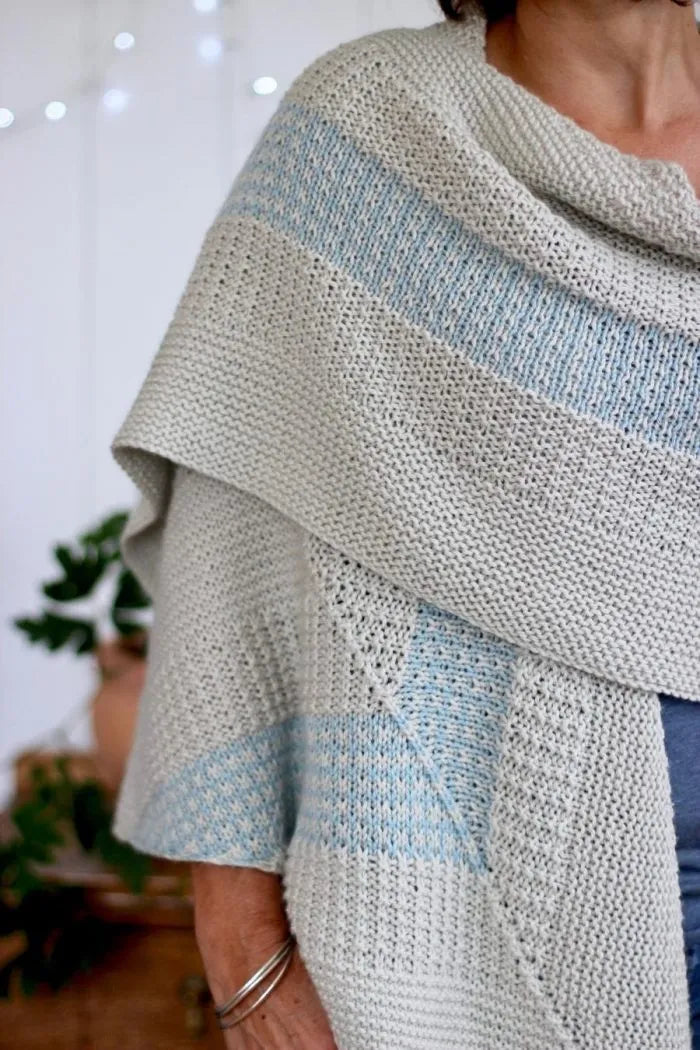 You’ll relax to the rhythm of simple stitches, subtle colour play and delightful shifts in direction with easy increases and decreases.