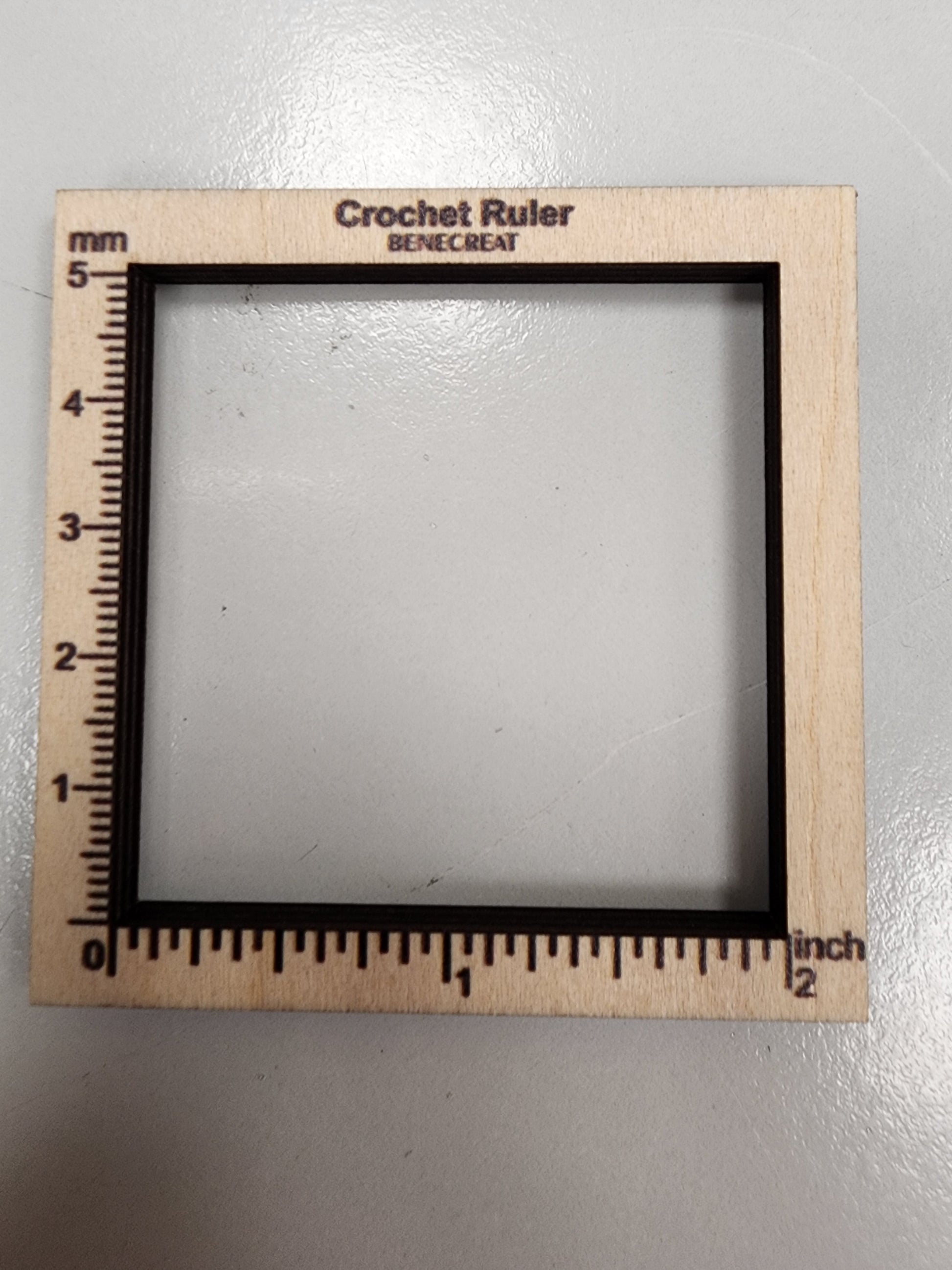 Assorted wooden tools for assessing gauge of needles, hooks, yarn gauge (wraps per inch) and stitch/row gauge.