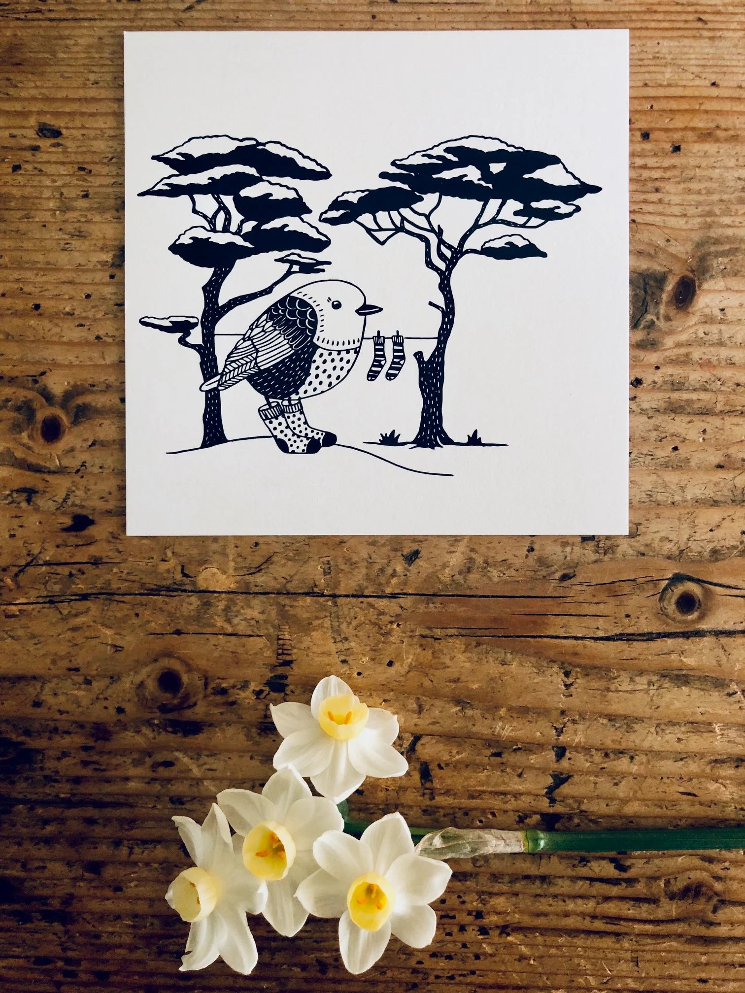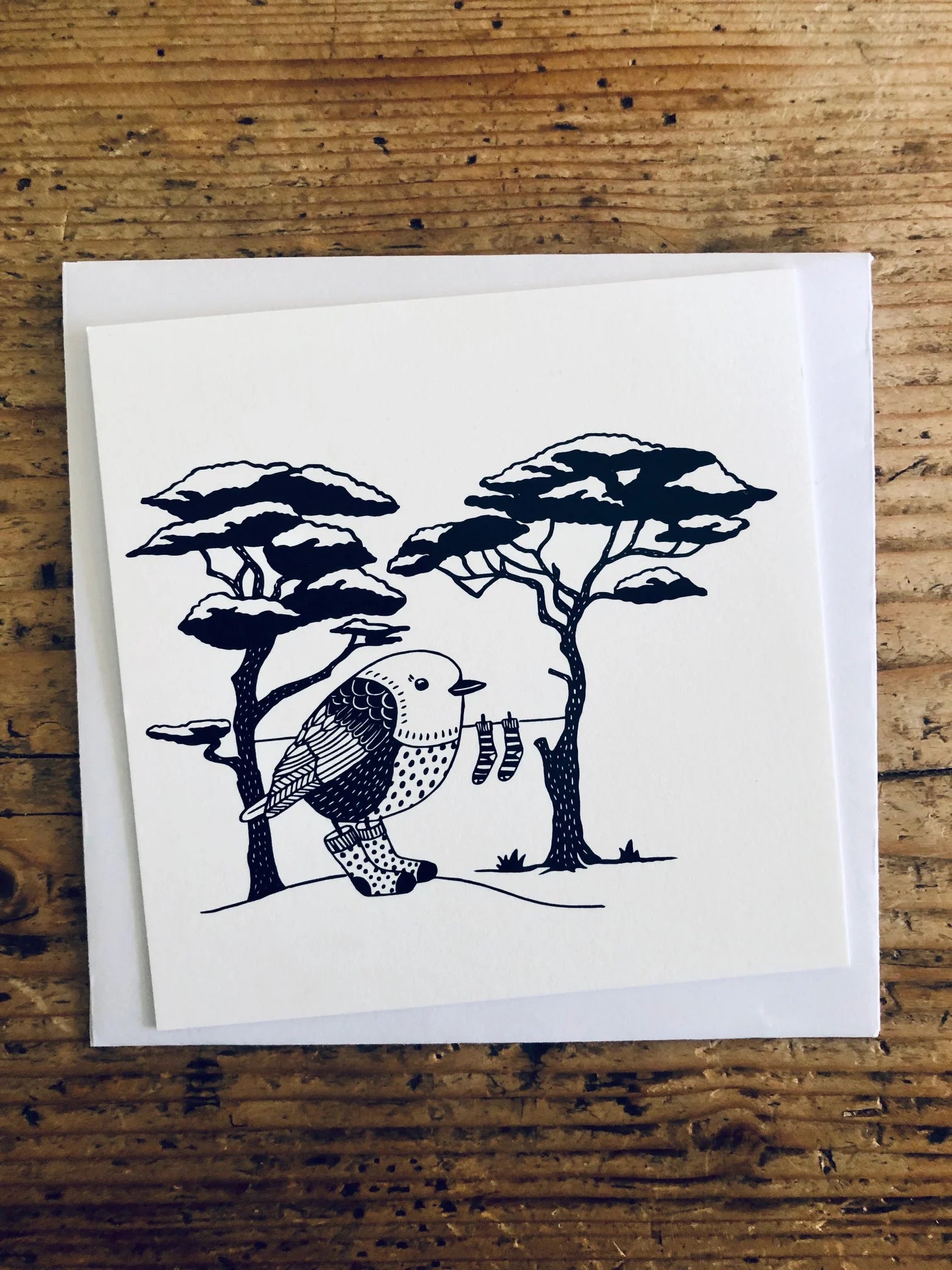 Our own original cards have been printed on off-white slightly textured card stock. They come with an envelope and are all enclosed in a cellophane bag. Sized 105 x 105mm and are blank on the inside, so they can be used for any occasion