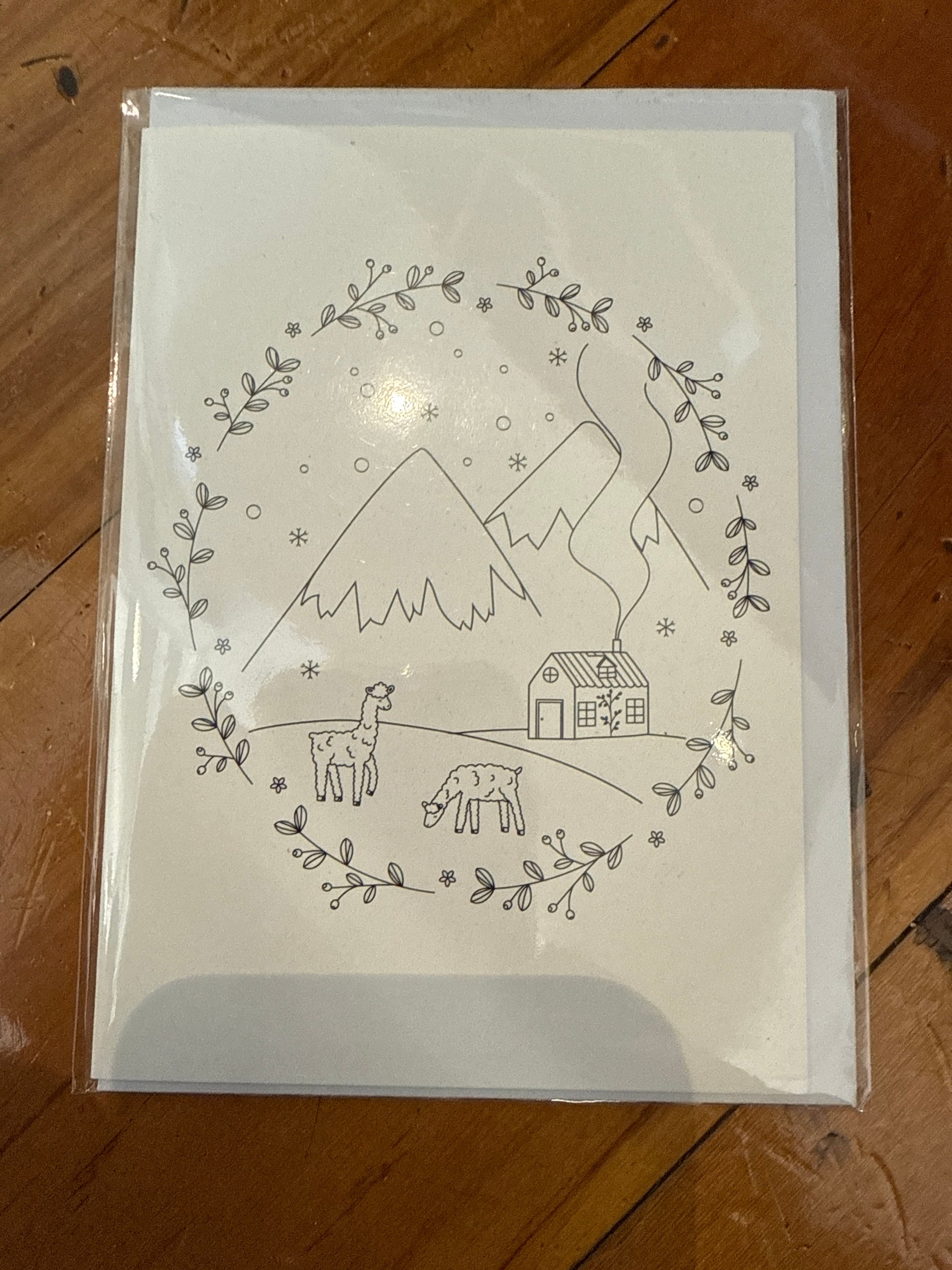 Our own original cards have been printed on off-white slightly textured card stock. They come with an envelope and are all enclosed in a cellophane bag. Sized 105 x 105mm and are blank on the inside, so they can be used for any occasion.