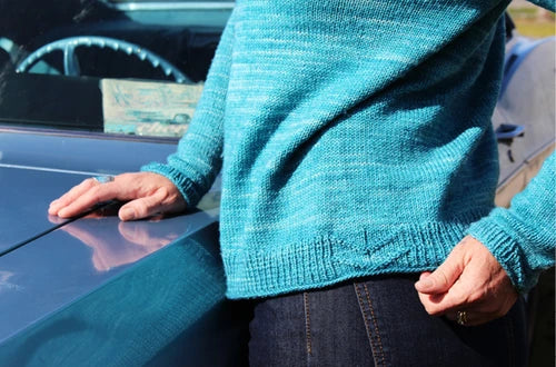 You will start knitting your Epaulette from the top, working the triple chevron details on the shoulders and you will make your way down to the hem, where you’ll work a double chevron on each hip in amongst your ribbing. When you get to the sleeve cuff you will work a single chevron in amongst the short rib there.