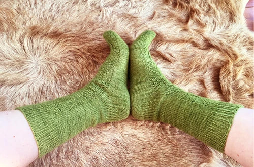 - 100g (approx 400m) Maniototo Sock (85% merino-cross wool, 15% nylon), sample made in Jewelled Gecko colourway