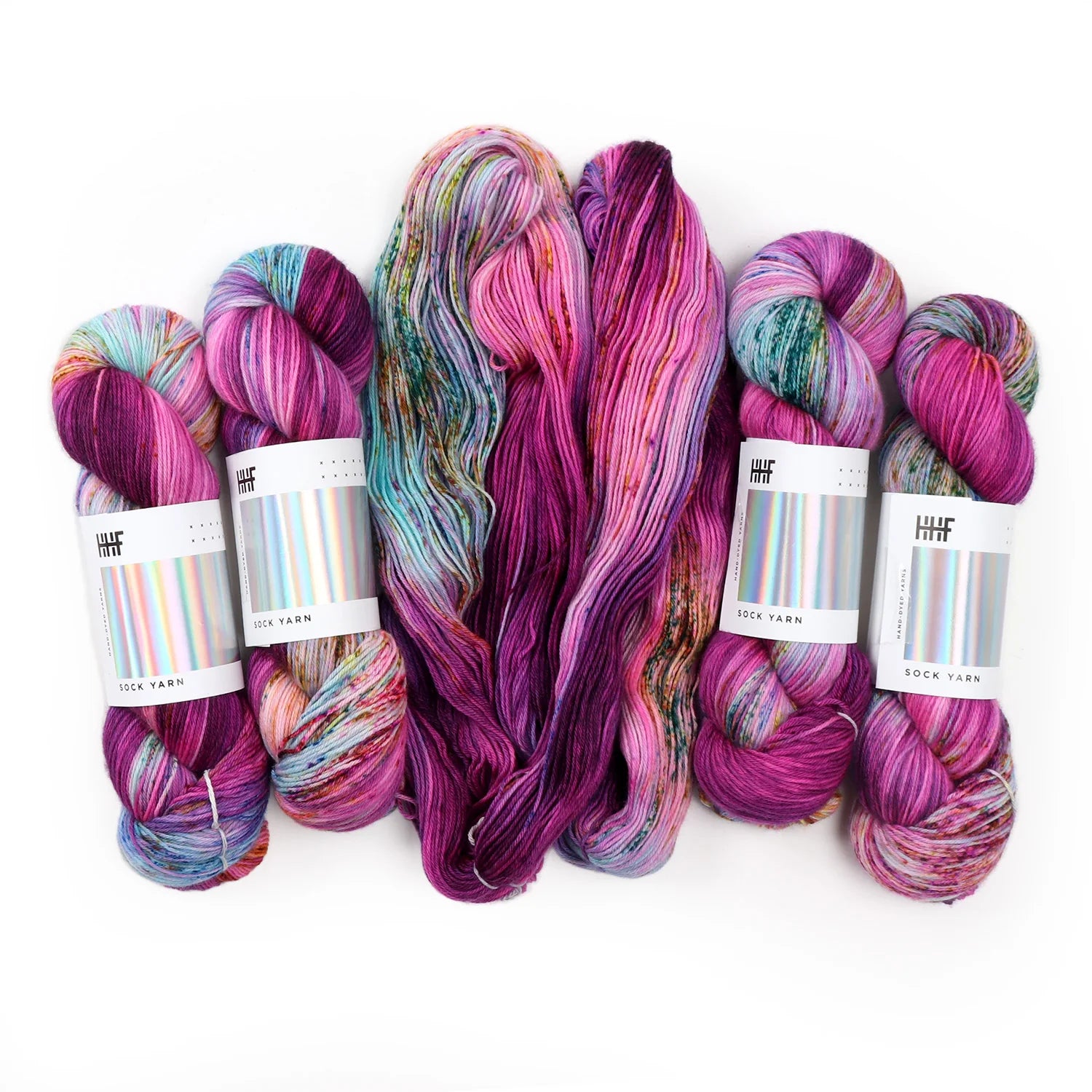 This is HHF's most popular and famous yarn base, and for good reason. The perfect balance of soft and durable, the dye takes especially beautifully on this base. The ideal yarn for accessories and light weight garments. It is fantastic for shawls, scarves, baby items, hats and more! It can also be held double for a DK project which makes a soft, supple fabric with even more variegation. If you are looking for a durable yarn for sock knitting, we would recommend our Twist Sock base. Sold in approx. 100g skeins/400m. Gentle machine wash, delicate cycle.