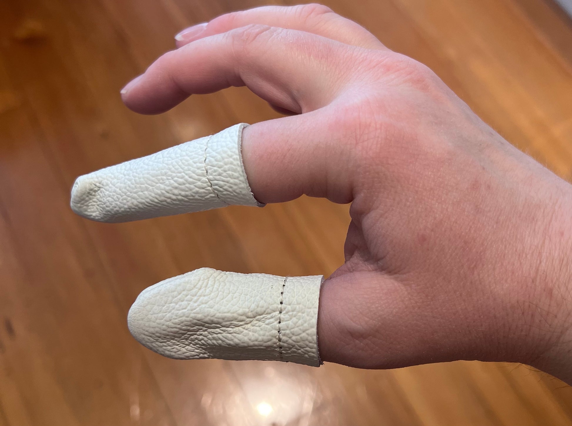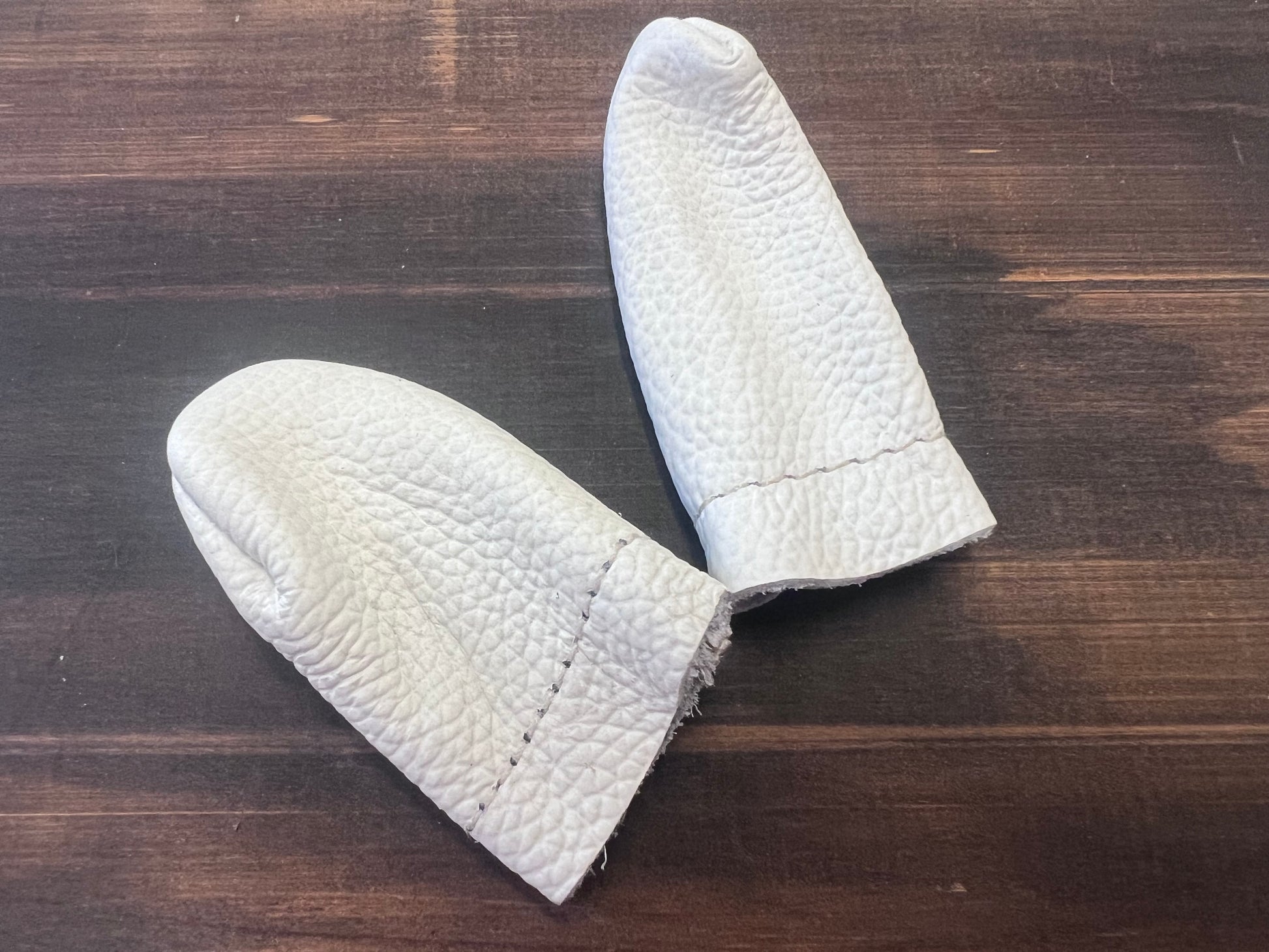 Take care while needle felting with these leather thimbles to protect your fingers. No stray stabbing of any thumbs while wearing these bad boys!