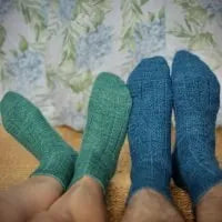 1 skein of Bombed Yarns Sock 4ply (60% Superwash Merino, 20% superfine Alpaca, 20% Nylon; 438 yds/400 m per 100g) in “Mr Myrtle” (blue); or, 1 skein of Bombed Yarns Sock 4ply (60% Superwash Merino, 20% superfine Alpaca, 20% Nylon; 438 yds/400 m per 100g) in “Mrs Myrtle” (teal);