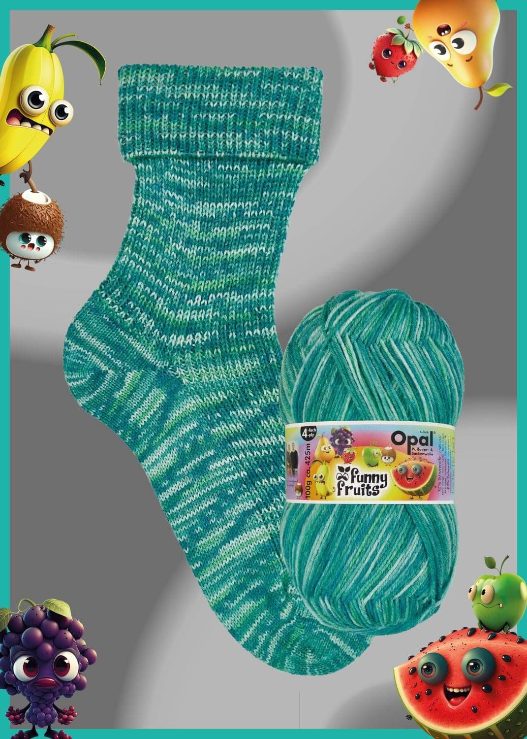 Opal Funny Fruits, fingering/4ply, 100gm - Crispy Kiwi - 11412