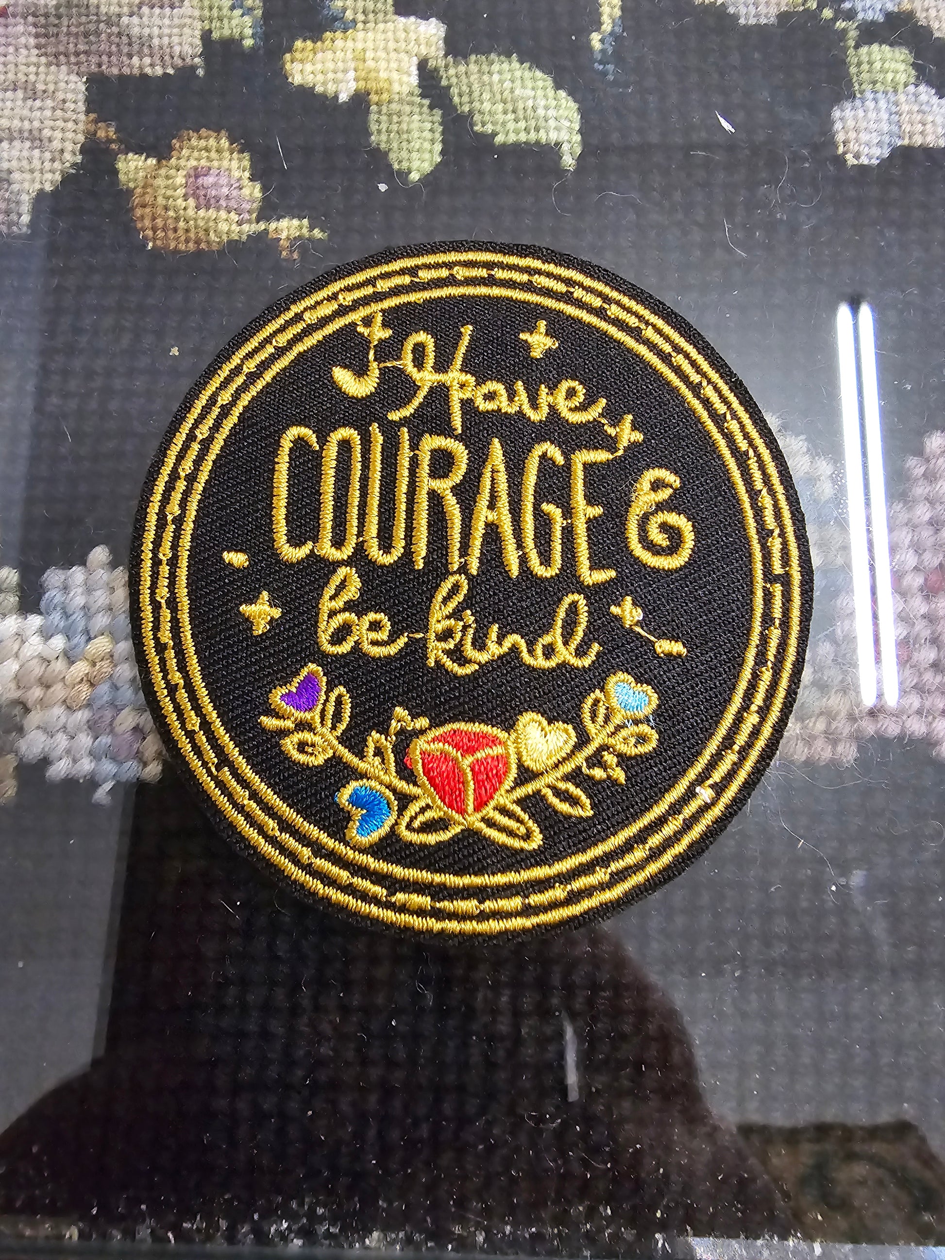 Embroidered black patch. Perfect for adorning bags and crafts.