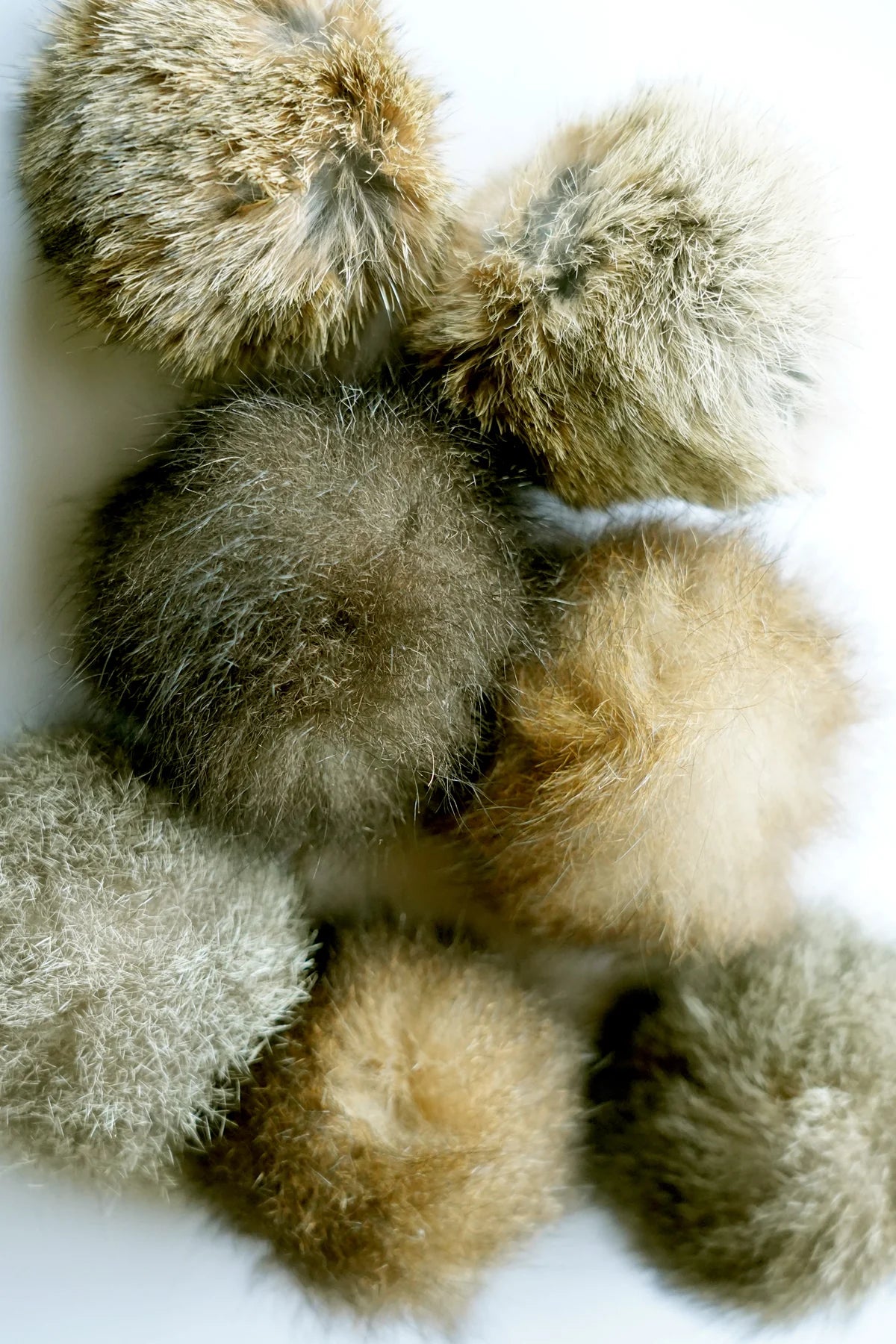 These pom poms are wonderfully soft and luscious and easily added to your knitting. A natural product they vary slightly in size and colour, with a diameter of 7 to 9 cm.