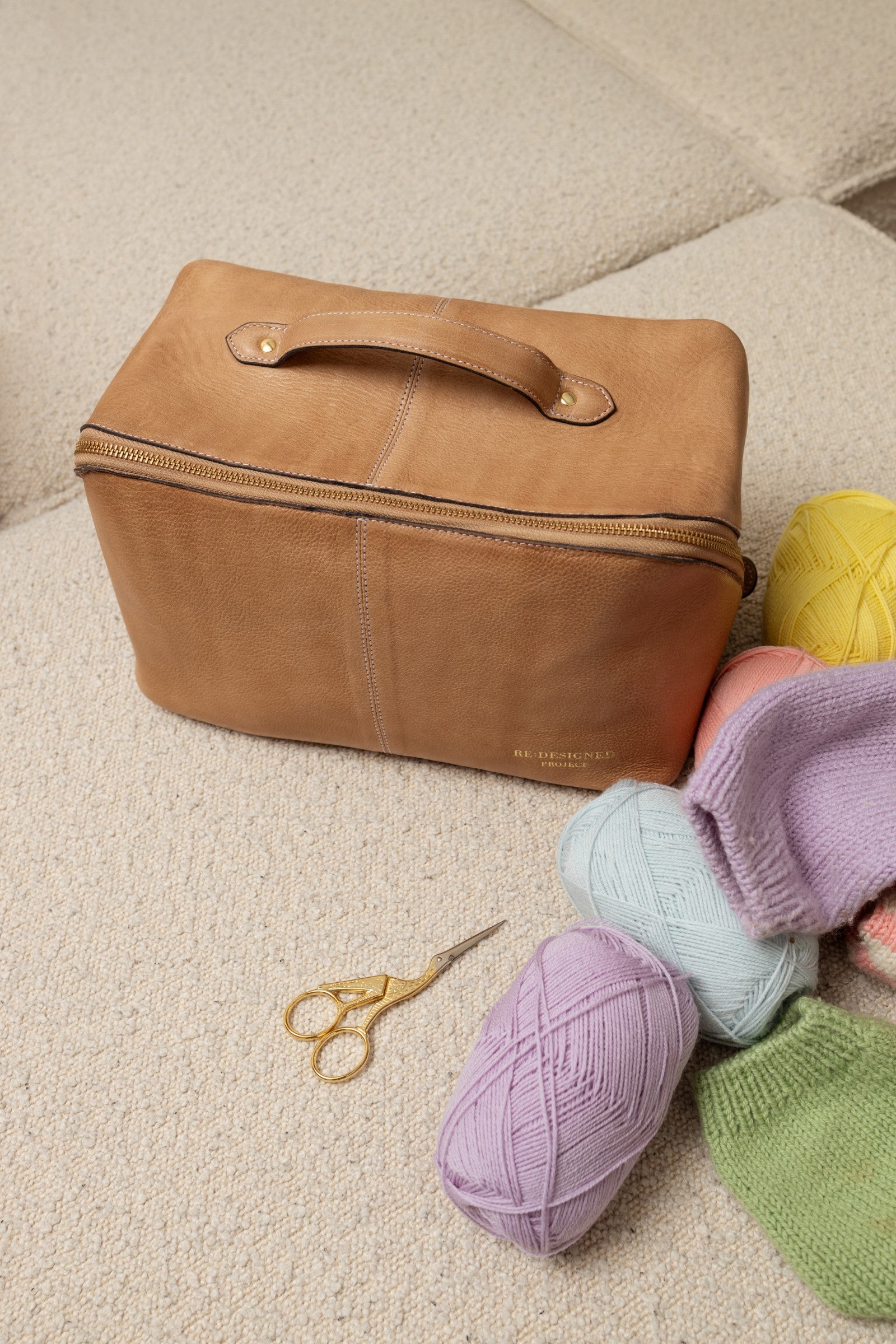 Project 10 is a curated beauty box style bag designed for yarn enthusiasts and knitting aficionados.