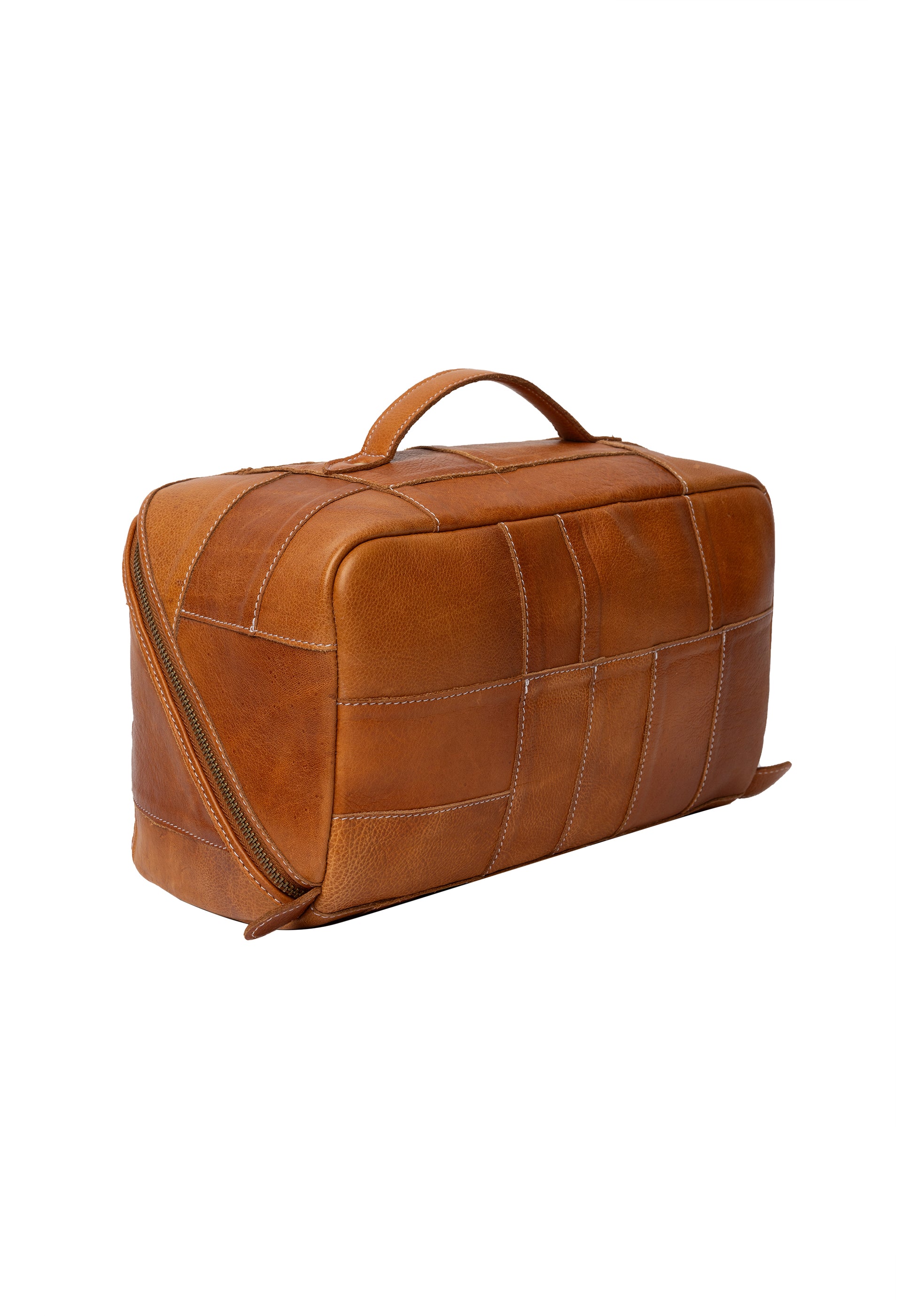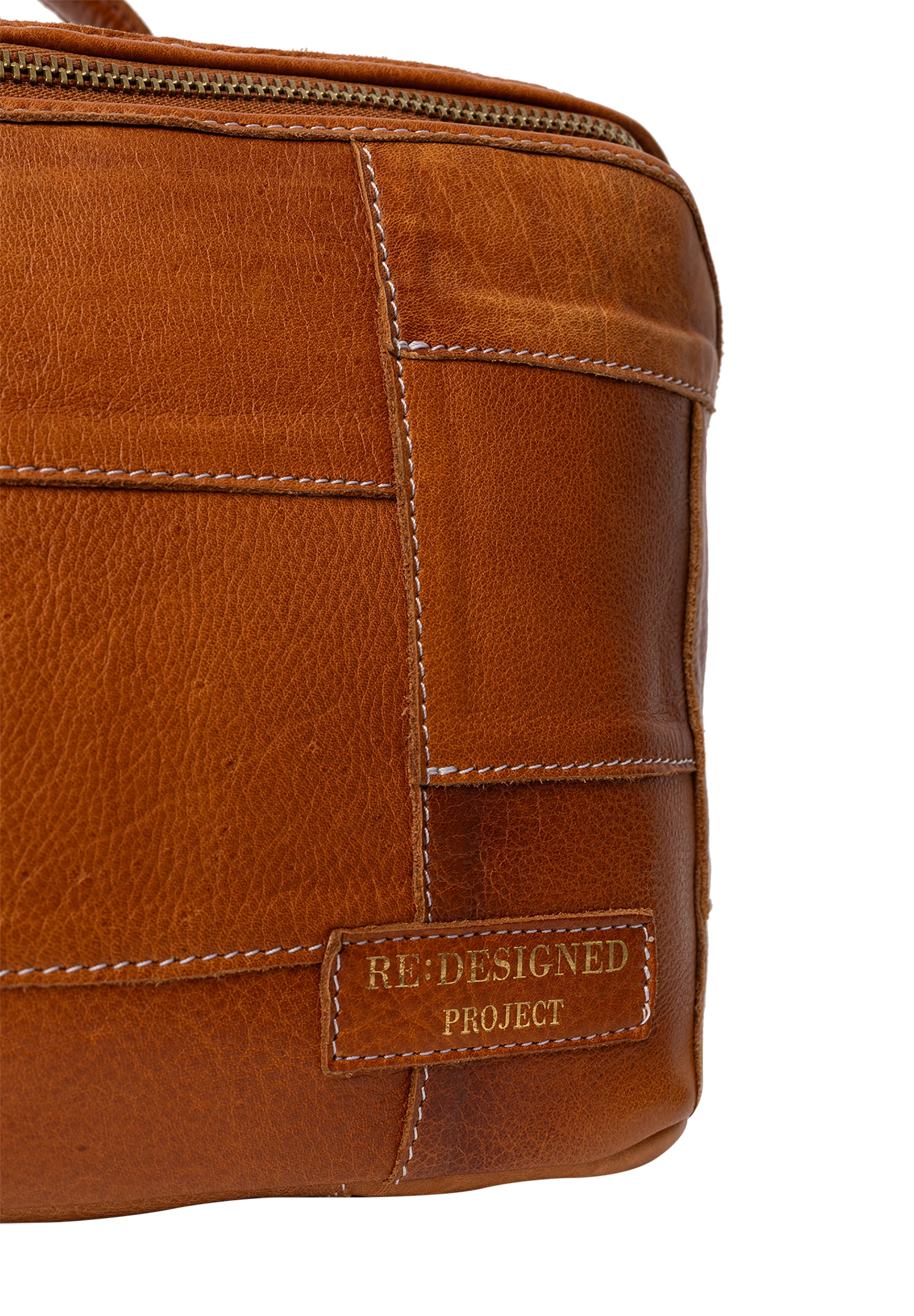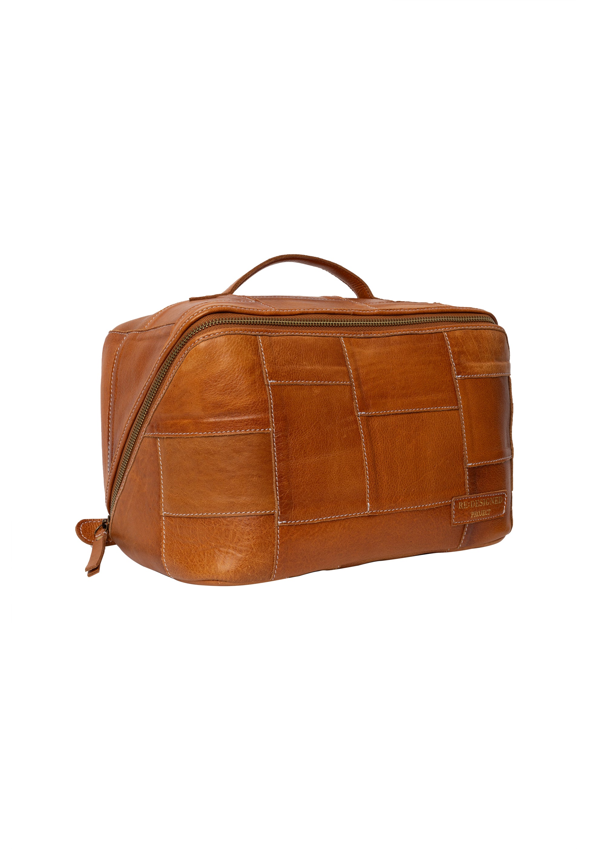 The waste leather is cut into smaller squares and stitched together carefully ensuring a unique and beautiful project bag where no two are the same.