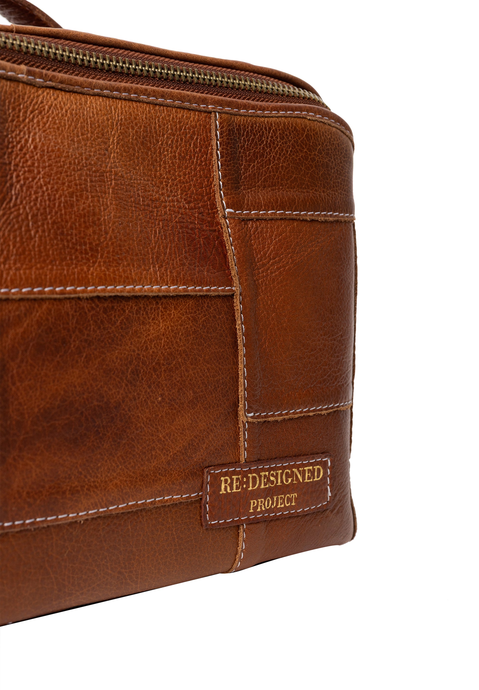 The waste leather is cut into smaller squares and stitched together carefully ensuring a unique and beautiful project bag where no two are the same.