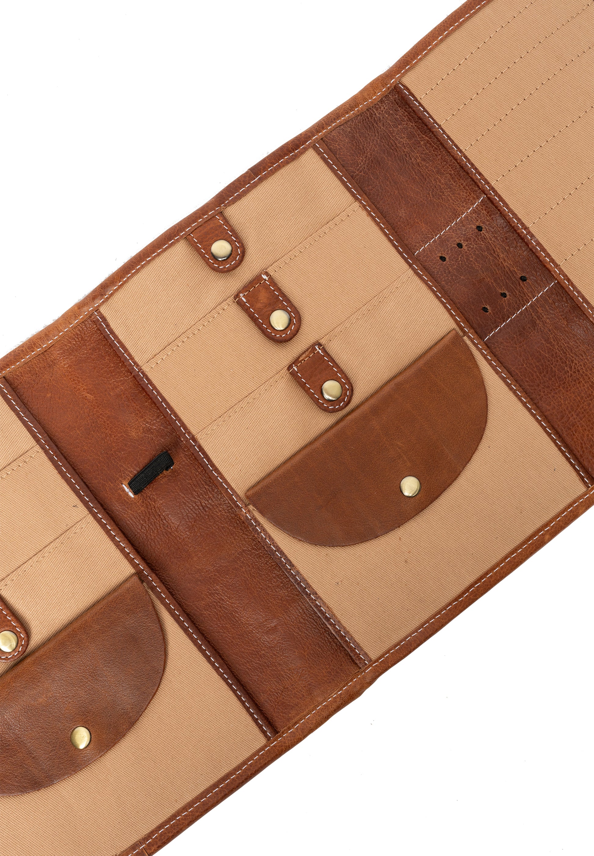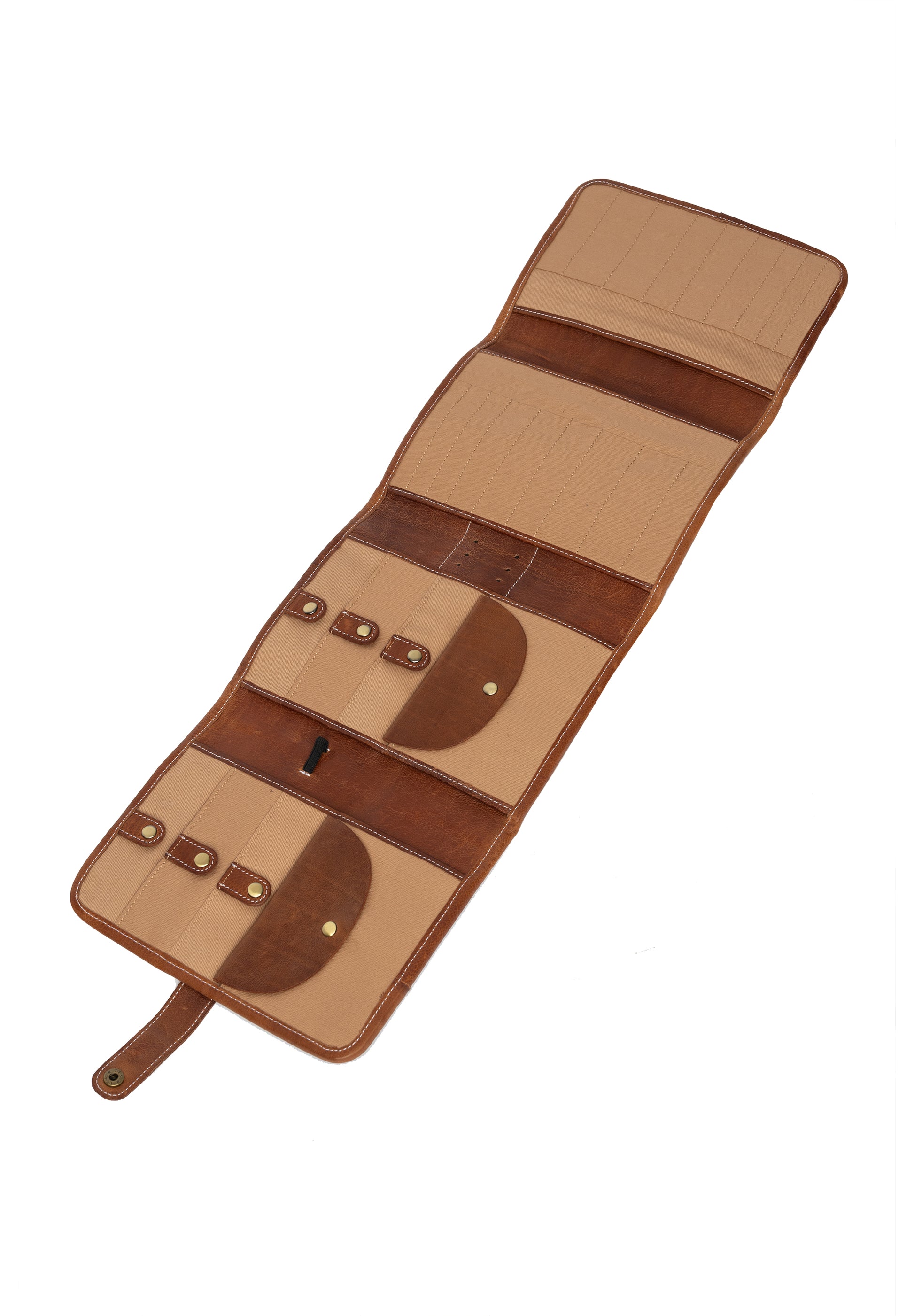 It has so many pockets, compartments and other fabulous features where you can store your needles, hooks, scissors, measuring tape and more. Handmade from beautifully soft leather, this is a gorgeous case to keep all your notions and accessories. The entire needle case elegantly folds together and fastens with a snap, making it easy to carry your essential knitting tools. It's 18cm wide when closed and 70cm when opened up.