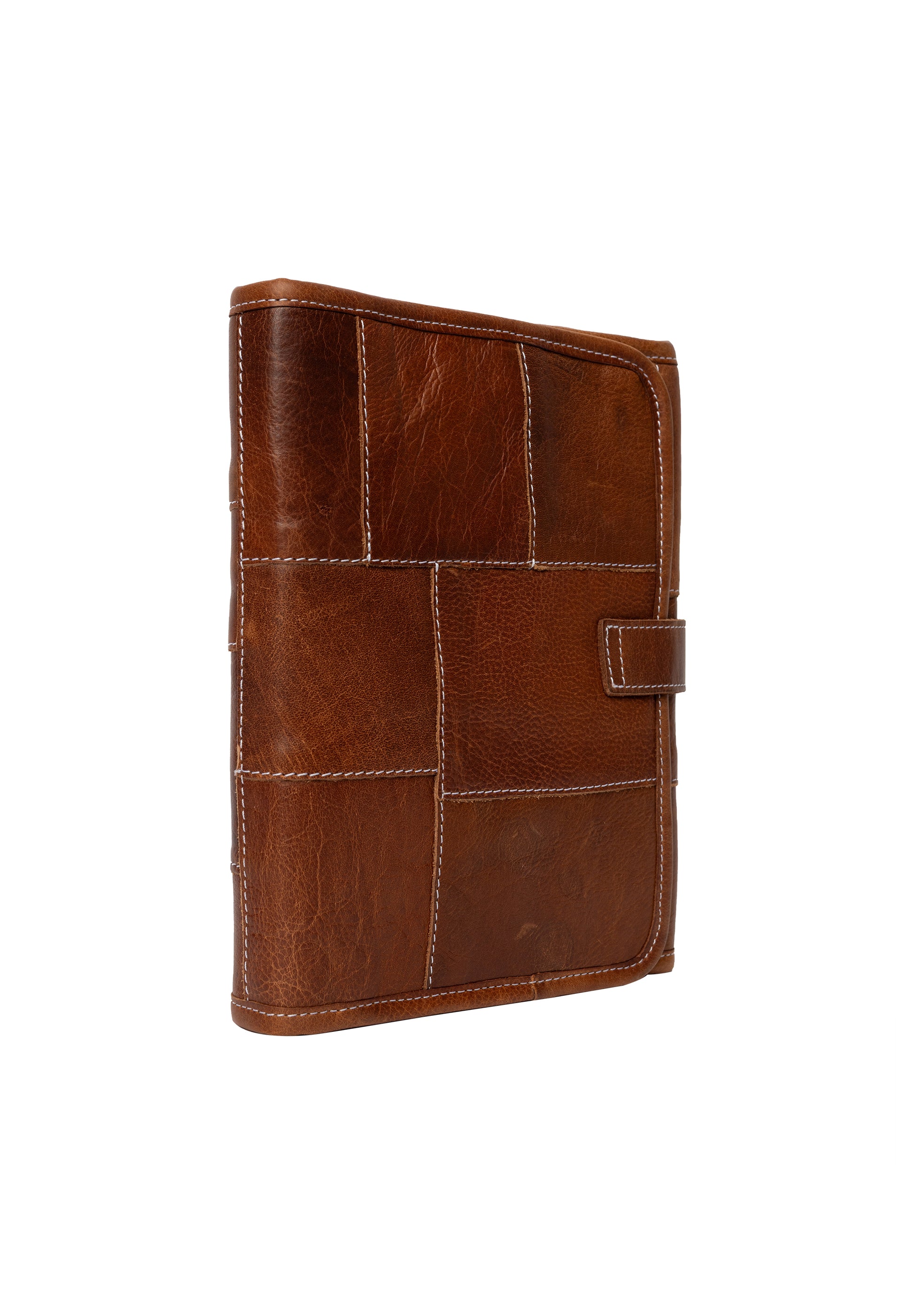The waste leather is cut into smaller squares and stitched together carefully ensuring a unique and beautiful project bag where no two are the same.