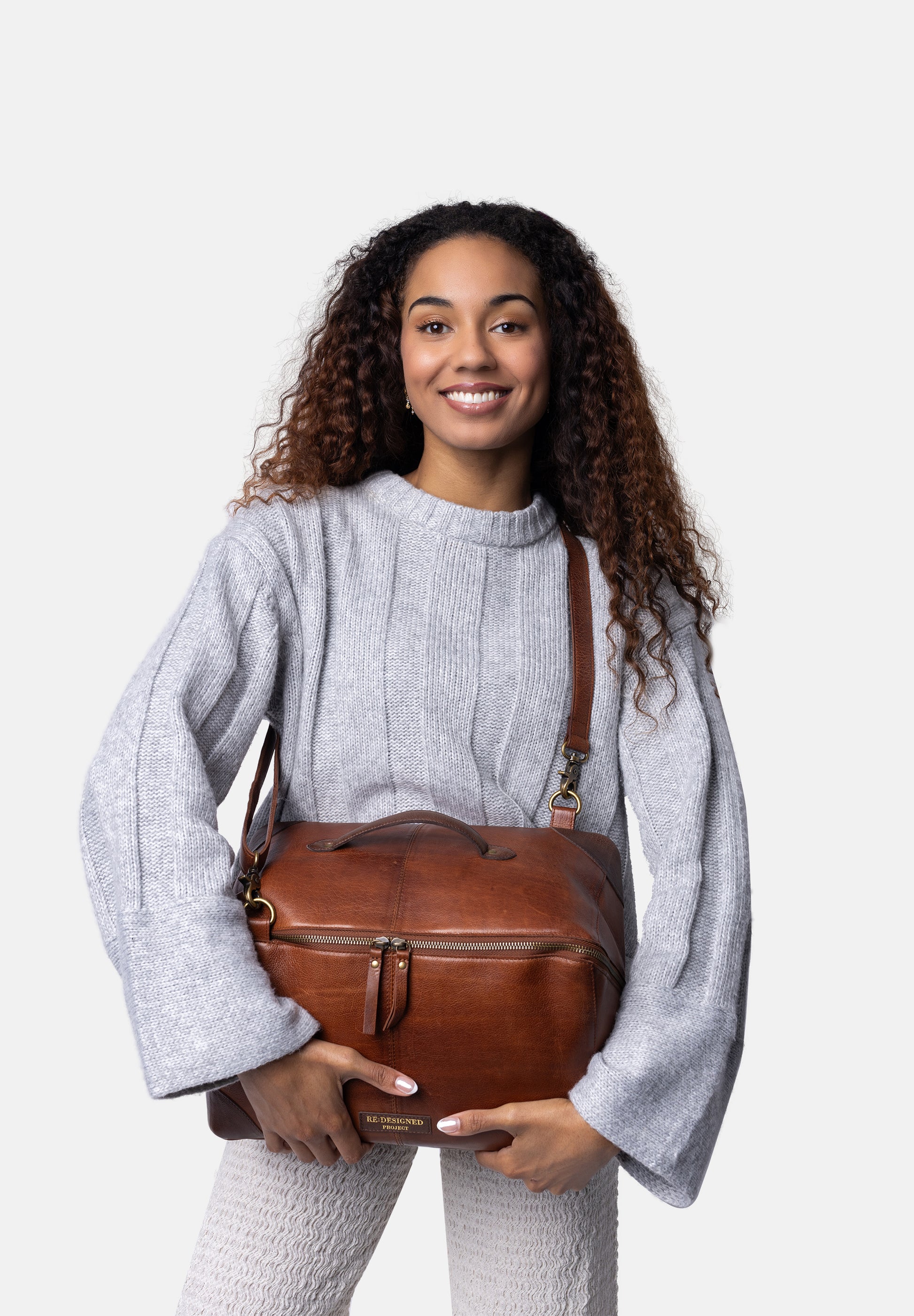 Project 80 is a larger version of our famous Project 10 bag with space for all your yarn and accessories. It opens with a double zipper, revealing two large compartments and large removable zip pocket inside. It comes with an adjustable crossbody strap, so you can take it with you wherever you go.