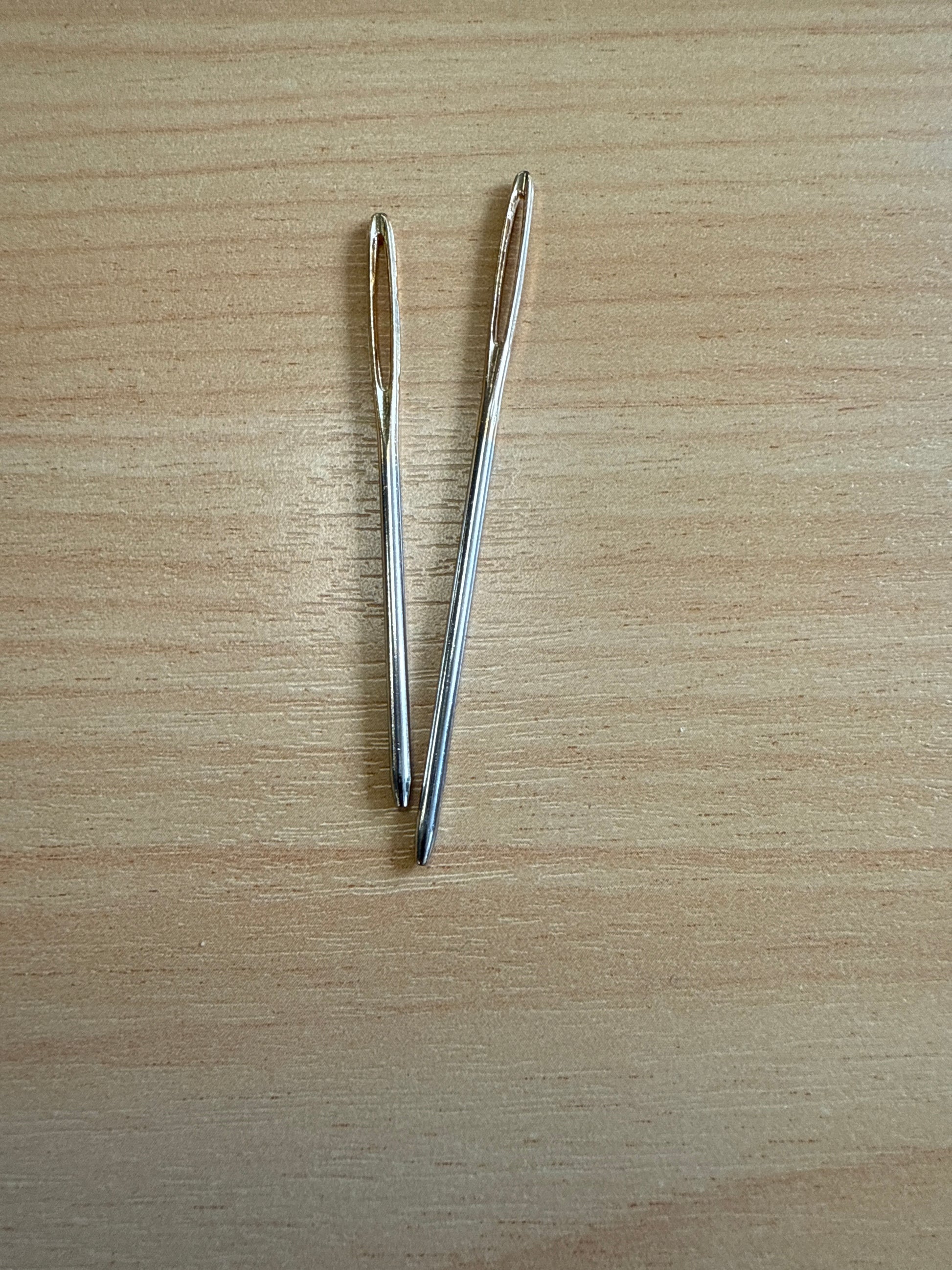 Aluminium straight needle in various lengths and eye sizes. If ordered online, you will be sent a random selection.