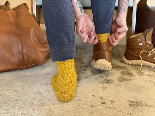 The Ties that Bind Sock is a great introduction to the process of knitting cabled socks and exploring the collection. Knit in the incomparable Amble you will reach for these socks to wear every single day.