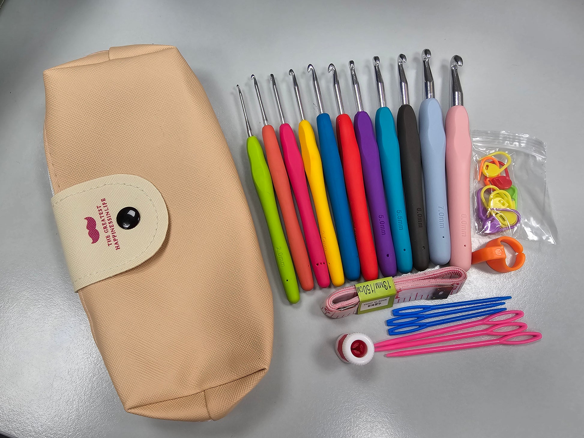 11 crochet hooks in a range of sizes from 2mm to 8mm