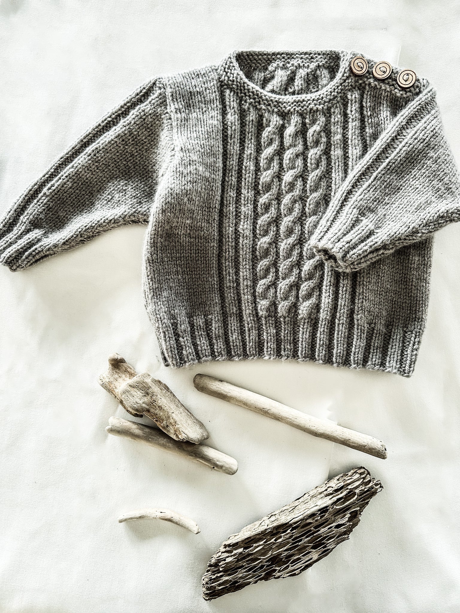 The Whitley Sweater and Hat by lisafdesign is knitted from soft 5ply merino yarn. The sweater features a simple combination of 2x2 ribbing and cable patterns, enhanced by ribbed details, a classic crew neck and buttoned opening for a comfortable fit. The matching hat features a folded brim, for extra warmth.